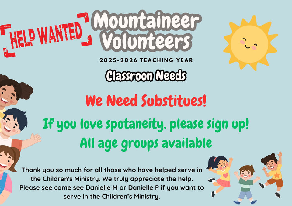 Nursery and children's ministry for 2-year-olds through Jr. High provided during the 10:40 AM service